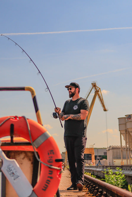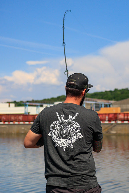 Wir haben das mega coole Motiv der beliebten CZ+ Videoserie „Kanalratten“ auf feinsten und fairsten Stoff gebracht/gepackt und dieses wahnsinnig stylische Shirt ist dabei rausgekommen. Natürlich muss es optisch auch zur rauen und oft grauen Angelei am Kanal passen, deshalb kommt das Kanalratten Shirt in einem schön melierten dunkelgrau daher, so wie eine Spundwand. Das Motiv ist in schlichtem schwarz-weiß-grau, sowohl als großer Rücken- wie auch kleinem Brustprint aufgedruckt und passt perfekt zur T-Shirt Farbe. Auffällig unauffällig und trotzdem kein Stück langweilig, so wie es auch die Kanäle oft sind.
