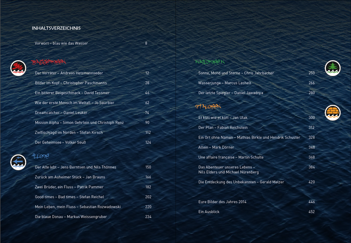 Jan Brauns, Sebastian Rozwadowski, Jan Ulak, Chris Jahrbacher, Michael Nürenberg, Patrik Pammer, Stefan Kirsch, Nils Elders, Andreas Hetzmannseder, David Tessmer, Jo Saurbier, Daniel Leuker, Simon Gehrlein, Christoph Renz, Markus Weissengruber, Jens Berntsen, Nils Thönnes, Stefan Reichel, Daniel Jawadnya, Marcus Lechelt, Fabian Reichstein, Mathias Birkle, Hendrik Schuster, Martin Schulte, Gerald Melzer und die drei Herausgeber haben ihre unveröffentlichten Geschichten exklusiv diesem Werk beigesteuert. Stories von großen Erfolgen, lehrreichen Niederlagen, echter Pionierarbeit, legendären Fischen, aber auch niederschmetternden Schicksalsschlägen.